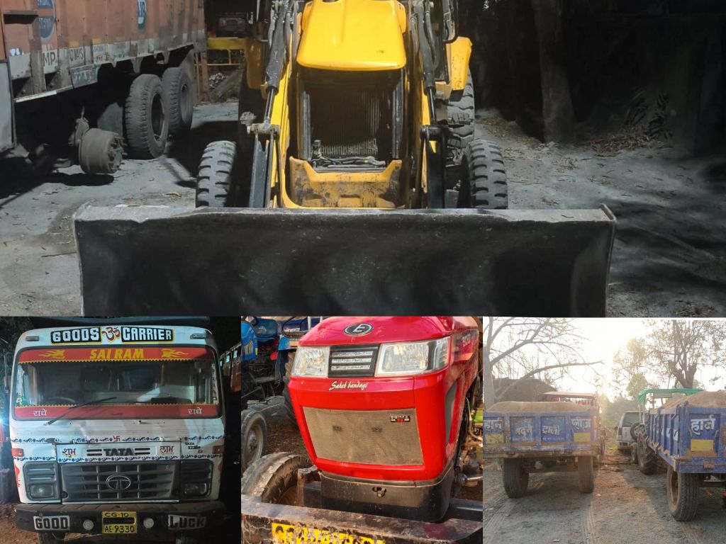 खनिजों के अवैध उत्खनन व परिवहन पर 1 जेसीबी, 4 हाइवा और 2 ट्रेक्टर ट्राली सहित 07 वाहन जप्त