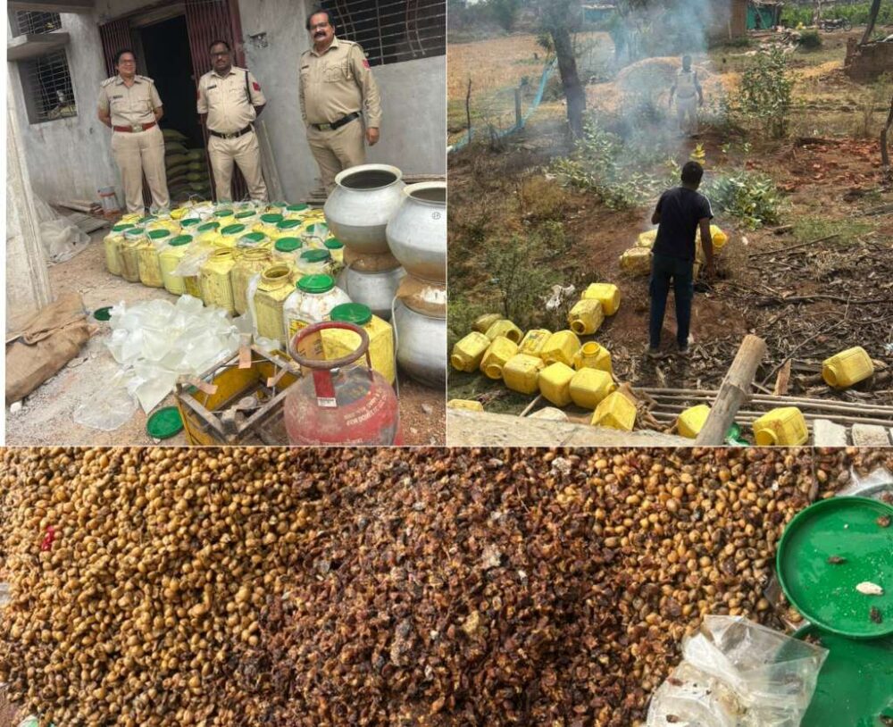 महुआ शराब बनाने की फैक्ट्री में आबकारी विभाग का धावा, 155 लीटर शराब जप्त, 600 किलो लहान जप्त, आरोपी गिरफ्तार