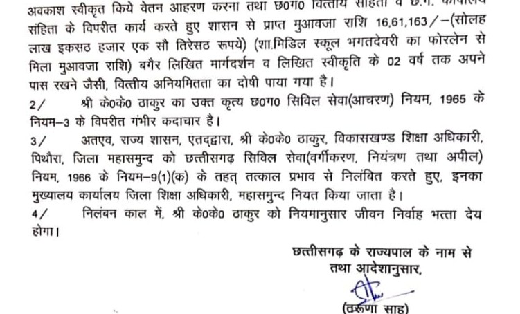 16 लाख रुपए से ज्यादा की वित्तीय अनियमितता, BEO तत्काल प्रभाव से निलंबित