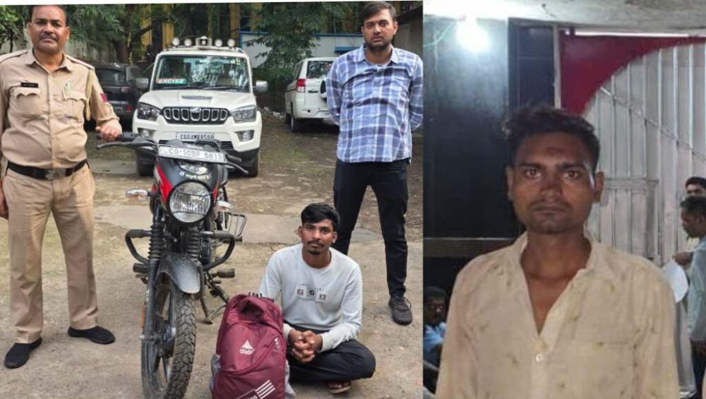गांजा और शराब की तस्करी करते हुए दो गिरफ्तार, 5 किलो गांजा और 7 लीटर शराब जप्त