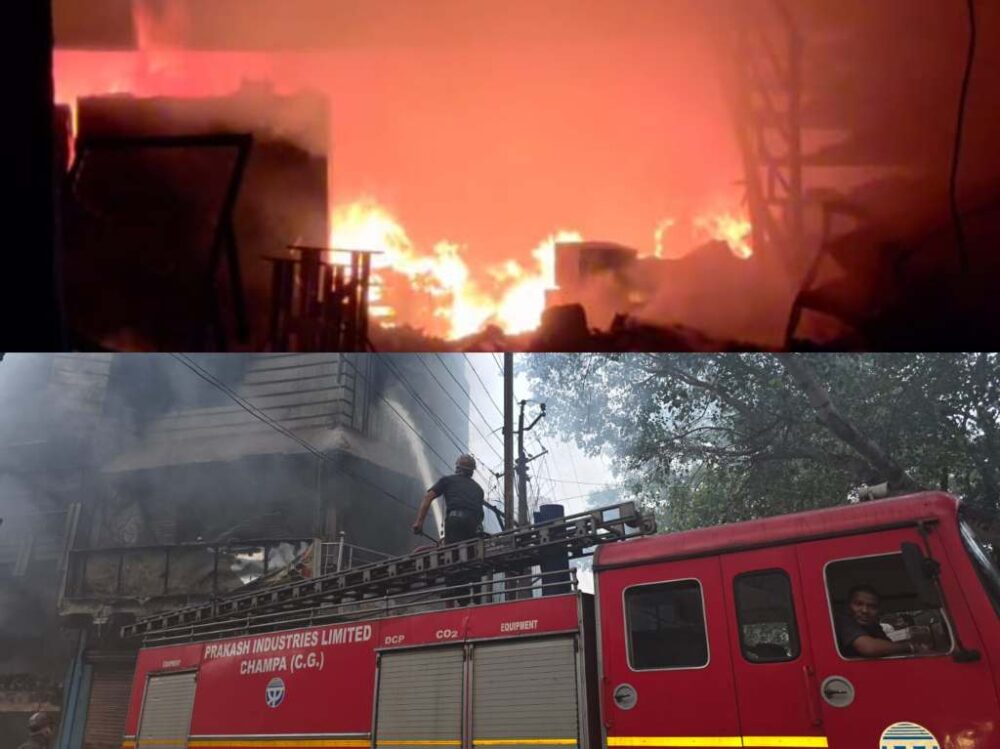शिवरीनारायण के बॉम्बे मार्केट में भीषण आग, तीन दुकानें जलकर खाक, लाखों का नुकसान