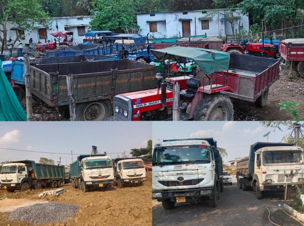 खनिजो के अवैध उतखनन व परिवहन पर 14 ट्रेक्टर ट्राली, 05 हाइवा व 01 पोकलेन मशीन व 01 जे सी बी मशीन जप्त
