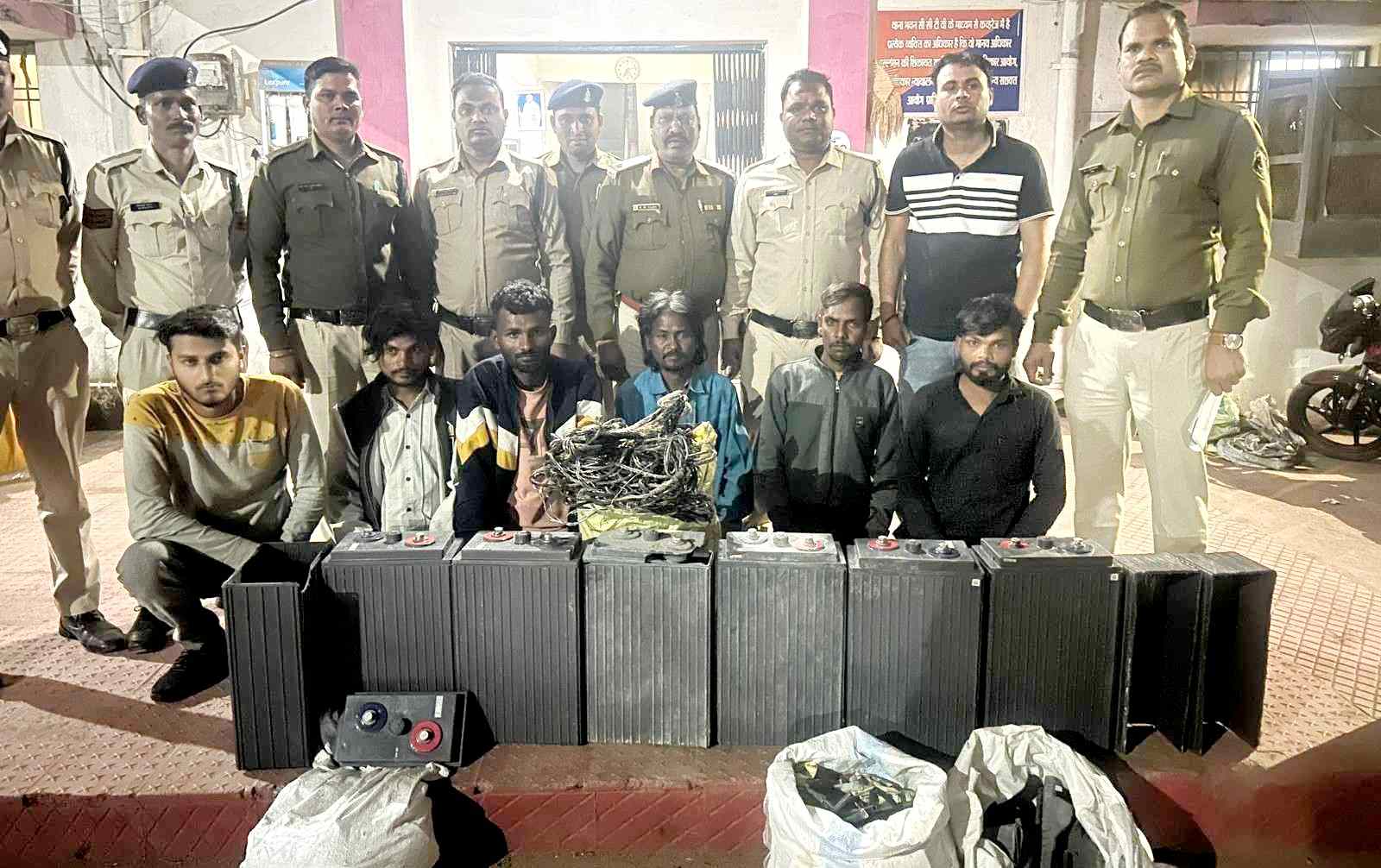 बिलासपुर। BSNL के टावर बैटरी चोरी करने वाले गिरोह के 6 सदस्यों को पुलिस ने गिरफ्तार किया है। आरोपियों से 09 नग बैटरी जप्त की है।मिली जानकारी के अनुसार 19-01-2025 को बीएसएनएल आफिस से 09 नग EXITE कंपनी की नई बैटरी चोरी होने की शिकायत समीर कुमार भगत ने थाने में की थी। रिपोर्ट पर थाना तखतपुर मे धारा 305, 331 (4) BNS अपराध पंजीबद्ध कर विवेचना कार्यवाही मे लिया गया। घटना की जानकारी पुलिस अधीक्षक रजनेश सिंह को दी गई। उन्होंने तत्काल आरोपियों को गिरफतार करने के निर्देश दिए। इसके बाद थाना प्रभारी देवेश सिंह राठौर ने टीम गठित कर घटना स्थल के आस पास का बारिकी से निरीक्षण किया और लोगो से पुछताछ की। जांच के दौरान सीसीटीवी फुटेज के आधार पर घटना के संदेही आरोपियों से पुछताछ की है। आरोपियों ने चोरी करना एवं चोरी गये समान को यश कसार बर्तन दुकान वाले के पास बेचने की जानकारी दी। आरोपीगणों के कब्जे से अपराध मे प्रयुक्त सामाग्री पाना, पेंचीस, कटर, आरी तथा यश कसार के कब्जे से चोरी की 09 नग EXITE की बैटरी जप्त की गई। मामले में 6 लोगों को गिरफ्तार कर न्यायालय प्रस्तुत किया गया, जहां से उन्हें जेल भेज दिया गया है। कार्यवाही मे तखतपुर थाना स्टाफ एवं सायबर सेल बिलासपुर की महत्वपूर्ण भूमिका रही।