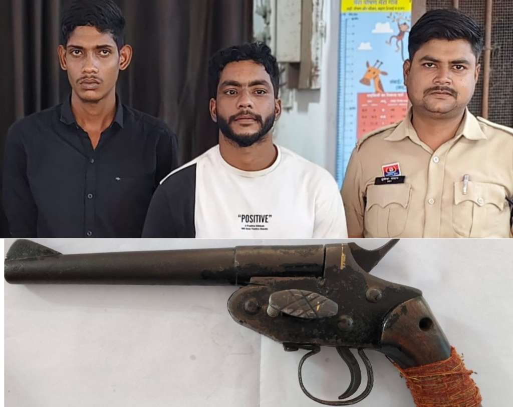 बिलासपुर। सिरगिटटी पुलिस ने सुनसान जगह पर देशी कट्टा लेकर लोगों को डराने धमकाने वाले दो युवकों को गिरफ्तार किया है। आरोपियों से एक देशी कट्टा भी जप्त किया गया है।