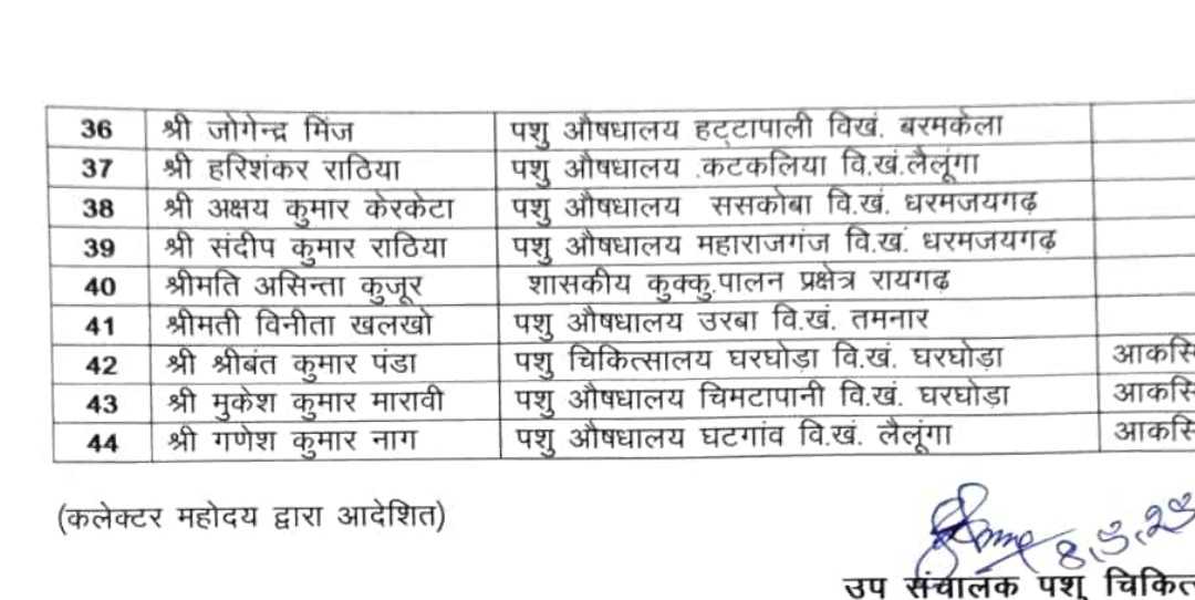रायगढ़। पशु चिकित्सा विभाग के 44 कर्मचारियों को बर्खास्त कर दिया गया है। इनकी भर्ती में भरी अनियमितता थी। भर्ती करते से न आरक्षण नियमों का पालन किया गया था और न ही मेरिट का ध्यान रखा गया।