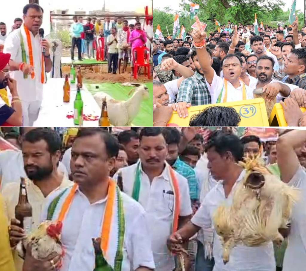 लोहंडीगुड़ा एसडीएम नीतीश वर्मा पर आरोप है कि चित्रकोट आने वाले वीआईपी सैलानियों और बड़े अफसरों की खातिरदारी के लिए वे सरपंचों और पार्किंग शुल्क वसूलने वाली ग्राम समिति पर मुर्गा, बकरा और दारू का इंतजाम करने के लिए दबाव डालते हैं। मुर्गा, बकरा, दारू का इंतजाम करने से इंकार करने वाले सरपंचों, प्रमुख ग्रामीणों और ग्राम समिति से जुड़े युवाओं को प्रताड़ित करते हैं। ऐसा ही एक मामला कुछ दिन पहले जब चर्चा के केंद्र में आया जब सरपंच भंवर मौर्य ने मुर्गा, बकरा और दारू का इंतजाम करने से साफ मना कर दिया। फिर क्या था… SDM ने अपने पद की ताकत दिखा दी। आरोप है कि एसडीएम के कहने पर पुलिस ने सरपंच भंवर मौर्य और अन्य ग्रामीणों के खिलाफ संगीन धाराओं में मुकदमा दर्ज कर लिया। इस मामले ने तूल पकड़ लिया। एसडीएम के साथ सरपंच और ग्रामीणों की जमकर बहस हुई और कांग्रेस ने भी एसडीएम के खिलाफ मोर्चा खोल दिया। दो दिन पहले लोहंडीगुड़ा ब्लॉक कांग्रेस कमेटी और ग्रामीणों ने एसडीएम के खिलाफ हल्ला बोला था और आज खुद प्रदेश कांग्रेस अध्यक्ष दीपक बैज, वरिष्ठ कांग्रेस नेता एवं जगदलपुर के पूर्व विधायक रेखचंद जैन, प्रदेश कांग्रेस कमेटी के सचिव दुर्गेश राय, जिला कांग्रेस अध्यक्ष द्वय सुशील मौर्य, प्रेमनाथ शुक्ला समेत सैकड़ों कार्यकर्ताओं के साथ सड़क पर उतर आए। कांग्रेस के कार्यकर्ता अपने हाथ में मुर्गा, बकरा, दारू की बोतलें लेकर SDM को भेंट करने निकल पड़े। दीपक बैज खुद अपने एक हाथ में जिंदा देशी मुर्गा और दूसरे हाथ में प्रतीकात्मक दारू की बोतल लेकर चल रहे थे, जबकि एक कांग्रेस नेता जीवित सफेद बकरे की डोर थामे चलते नजर आए। इनके अलावा प्रदर्शन में कई कांग्रेसी मुर्गे और दारू की बोतल लहराते हुए चल रहे थे। प्रदर्शनकारी कांग्रेसी एसडीएम मुर्दाबाद, साय सरकार मुर्दाबाद के नारे लगा रहे थे। पुलिस ने कांग्रेस के लोगों और ग्रामीणों की भीड़ को रोकने के लिए एसडीएम ऑफिस से काफी पहले लोहे के बड़े बड़े ब्रेकर लगा रखे थे, जिन्हें गिराते हुए कांग्रेसी आगे बढ़ गए। पुलिस ने इन्हें रोकने के लिए पूरा जोर लगाया, मगर कामयाब नहीं हो पाई। कांग्रेस का कहना है कि सरपंच लोहंडीगुड़ा के उपर लगे मामलों में कई गंभीर धाराएं लगाई गई हैं। एसडीएम वीआईपी के लिए मुर्गा, मटन, दारू, सिगरेट की व्यवस्था करने के लिए आदिवासी सरपंच को बलि का बकरा बना रहे हैं। ऐसे एसडीएम को लोहंडीगुड़ा से तत्काल हटाया जाना चाहिए।