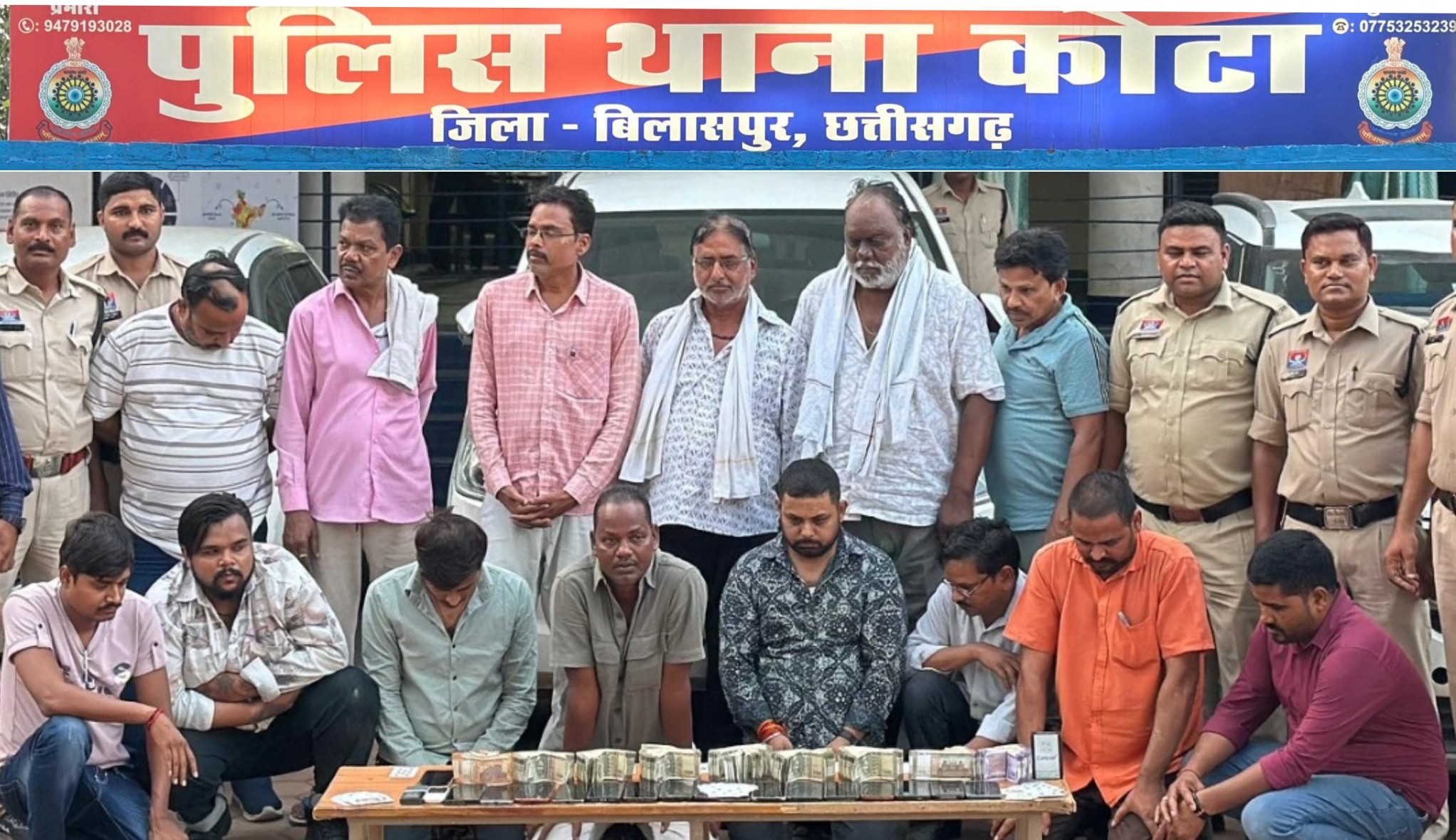शहर के होटल से लेकर आसपास के फार्म हाउस शानदार जुआ अड्डा बने हुए है। ऐसा कोई फॉर्महाउस नहीं है जहां जुआरियों की महफिल ना जमती है। रसूखदार जुआरी स्थान बदल बदलकर जुआ खेल रहे है। जुए की महफिल कभी इस फार्म हाउस में तो कभी उस फार्म हाउस में लग रग रही है। जुए की हर फड़ में शराब और कबाब की भरपूर व्यवस्था भी रखी जाती है। कोटा क्षेत्र के ऐसे ही एक फार्म हाउस में रविवार को थाना प्रभारी तोप सिंह नवरंग के नेतृत्व में पुलिस ने रेड कार्रवाई की। फार्म हाउस का मालिक और फड़ संचालक बंटी कश्यप है। जब पुलिस की रेड पड़ी तो कुछ जुआरी तो भाग निकले लेकिन 14 धारा गए। जिनको पुलिस ने पकड़ा है उनमें मिश्रीलाल कश्यप, हरिओम साहू, दीपक सोनी, ज्वाला सूर्यवंशी, प्रदीप पाण्डेय, राकेश कहार, शांतनु बघेल, राजेन्द्र कुम्हारे, मनोज कश्यप, यशोधर कश्यप, सागर कश्यप, महेन्द्र वर्मा, सिरीश कश्यप एवं राजकुमार तेजवानी शामिल है। पुलिस ने फड़ से और जुआरियों से 3 लाख 4200रू नगद जप्त किया है। इसके अलावा 17 नग मोबाईल भी बरामद किया गया है। पुलिस ने मौके 5 चारपहिया गाड़ी भी जप्त किया है। जिसमें इनोवा क्र. CG10 AE 8187, टिआगो कार क्र. CG 10 AM 1573, बलैनो कार क्र. CG 10 AZ 5491, किया सेल्टॉस कार क्र. CG 10 BK 3849 एवं विटारा ब्रेजा कार क्र. CG 10 BE 7804 शामिल है। आरोपियों के विरूद्ध छ.ग. जुआ प्रतिषेध अधिनियम 2022 के तहत् कार्यवाही किया जा रहा है।