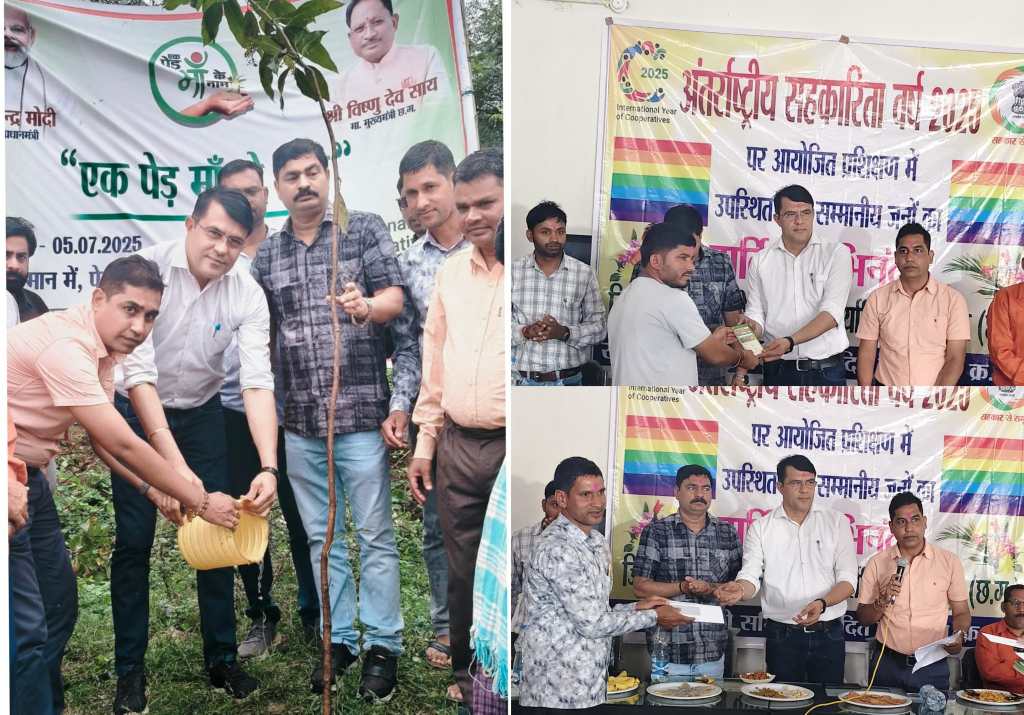 बिलासपुर। अंतरराष्ट्रीय सहकारिता दिवस के अवसर पर और “एक पेड़ मां के नाम” अभियान के तहत सेवा सहकारी समिति पासिद में जिला स्तरीय कार्यक्रम का आयोजन किया गया। मुख्य अतिथि जिला सहकारी बैंक के मुख्य कार्यपालन अधिकारी सुनील सोढ़ी, विशिष्ट अतिथि शेखर जायसवाल उप पंजीयक, आशीष दुबे नोडल अधिकारी जिला सहकारी बैंक बिलासपुर उपस्थित रहे। मुख्य अतिथि श्री सोढ़ी ने कहा की सहकारिता एक अभियान है जिसमें सभी व्यक्ति जुड़कर आपसी सहयोग कर बड़े से बड़े काम को कम समय में कर सकते हैं। पर्यावरण को सुरक्षित करने के लिए हमें पेड़ लगाना अति आवश्यक है, ताकि वातावरण शुद्ध रहे। उप पंजीयक ने अंतरराष्ट्रीय सहकारिता दिवस की सभी को बधाई दी और उसके बारे में विस्तार से सभी को बताया और यह भी कहा कि आने वाले समय को देखते हुए ज्यादा से ज्यादा पेड़ लगाकर प्रकृति को बचाना अति आवश्यक है। नोडल अधिकारी श्री दुबे ने कहा कि “एक पेड़ माँ के नाम’ अभियान पर्यावरण संरक्षण और मातृत्व के महत्व को दर्शाता है। हम सभी को पेड़ लगाने और पर्यावरण की रक्षा करने का संकल्प लेना चाहिए। नोडल अधिकारी ने अंतरराष्ट्रीय सहकारिता दिवस के उपलक्ष में कहा कि सहकारिता का मतलब सहयोग की भावना, एक दूसरे से पारस्परिक सहयोग कर सहकारिता के अभियान को सफल बना सकते हैं। कार्यक्रम में मुख्य अतिथि और विशिष्ट अतिथियों के द्वारा एटीएम कार्ड और किसान कार्ड का वितरण किया गया। कार्यक्रम में बिल्हा के शाखा प्रबंधक लक्ष्मण कौशिक, पर्यवेक्षक हितेश सलूजा, अभिषेक तिवारी, समिति प्रबंधक प्रदीप यादव, ऑपरेटर लक्ष्मी जयसवाल शरद कश्यप जनप्रतिनिधियों में दीनू यादव सरपंच पासिद, नरोत्तम यादव अध्यक्ष समिति पासिद, सोमेश तिवारी पूर्व मंडल अध्यक्ष, अशोक कौशिक पूर्व जिला पंचायत सदस्य, प्रकाश यादव जिला पंचायत प्रतिनिधि, शिवकुमार यादव किशोर यादव इसके साथ ही स्व सहायता समूह की महिलाएं और बहुत संख्या में ग्रामीण उपस्थित थे।