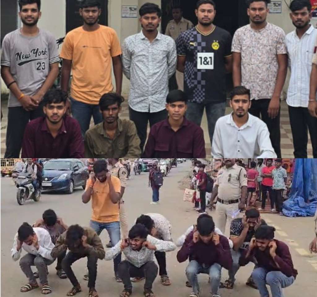 बिलासपुर। पुलिस ने उन 10 लंपट लड़कों को बीच सड़क में मुर्गा बनाया जिन्होंने गुरुवार की रात सड़क में गाड़ी खड़ी करके बर्थ डे पार्टी मनाया था। आरोपियों के द्वारा बीच सड़क में बुलेट खड़ी करके केक काटने से सड़क जाम हो गया था और लोगों को भारी परेशानी का सामना करना पड़ा था।
