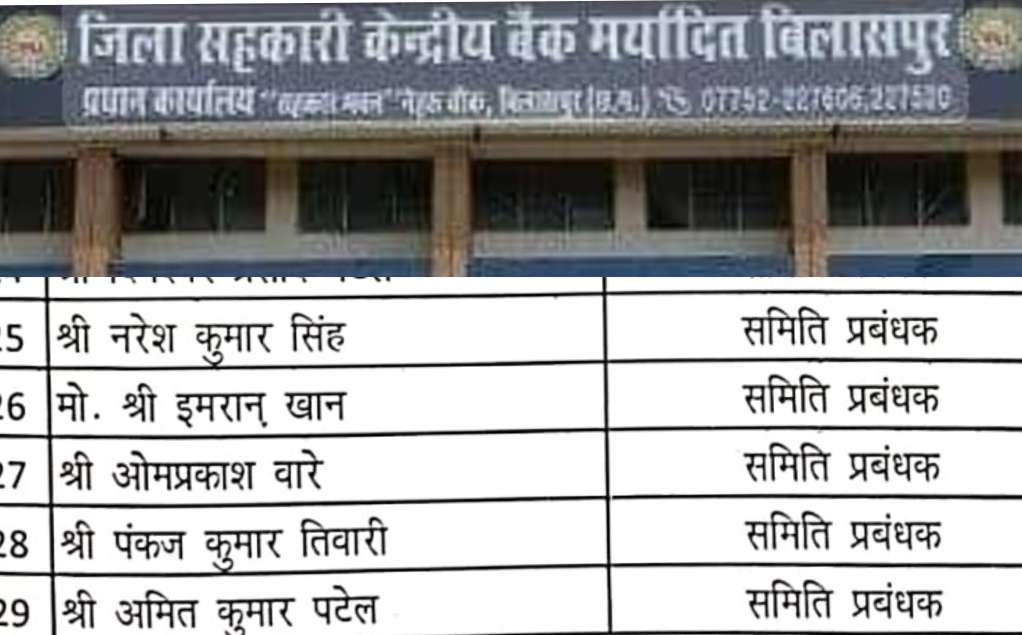 बिलासपुर। जिला सहकारी केंद्रीय बैंक बिलासपुर में हुई स्टाफ कमेटी की बैठक में दूषित प्रक्रिया में भर्ती हुए 29 अभ्यर्थीयो को बर्खास्त कर दिया गया है। बर्खास्त कर्मचारियों में 01 शाखा प्रबंधक 04 सहायक लेखापाल 08 पर्यवेक्षक 6 लिपिक सह कंप्यूटर ऑपरेटर और 10 समिति प्रबंधक शामिल है।