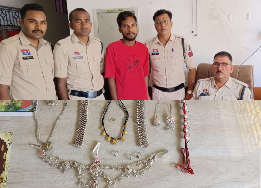 पुलिस से मिली जानकारी के अनुसार 05.10.2025 को कोनी थाने में करहीपारा, निरतु निवासी राजेन्द्र सूर्यवंशी अपनी पत्नी व बच्चों के साथ ससुराल गया हुआ था। दिनांक 07-10-25 को जब वह वापस लौटा तो देखा कि घर के अलमारी में रखा हुआ चांदी का पायल, मंगलसूत्र, फुल्ली, चाबी का गुच्छा, बिछिया कीमत लगभग 50 हजार रुपये के गहने चोरी हो चुके है। पुलिस में रिपोर्ट दर्ज करने के बाद माल मुलजिम की पतासाजी करने पर प्रार्थी के भतीजे पंकज सूर्यवंशी पिता रमेश, 23वर्ष, निरतु पर शक हुआ। जब उसे हिरासत में लेकर कड़ाई से पूछताछ की गई तो उसने चोरी करना स्वीकार कर लिया। साथ ही चोरी के गहने को घर मे रखने की जानकारी दी। पूछताछ के बाद आरोपी ने अपने कब्जे से चोरी की पूरी संपत्ति सहित घटना में प्रयुक्त ओजार पुलिस को बरामद कराया। इसके बाद आरोपी को गिरफ्तार कर न्यायालय पेश किया गया है।