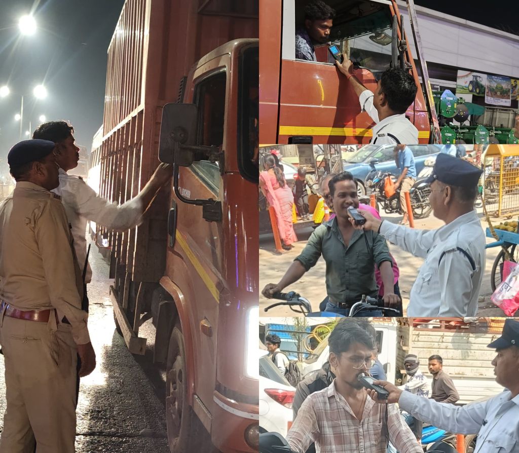 वरिष्ठ पुलिस अधीक्षक रजनेश सिंह के दिशा निर्देश एवं मार्गदर्शन, अतिरिक्त पुलिस अधीक्षक यातायात रामगोपाल करियारे एवं समस्त पर्यवेक्षण अधिकारियों के पर्यवेक्षण में यातायात नियमों का उल्लंघन करने वाले वाहन चालकों के विरुद्ध सख्त एवं प्रभावी कार्रवाई की जा रही है। इसी क्रम में सड़क दुर्घटनाओ में प्रभावी नियंत्रण एवं रोकथाम के लिए बिलासपुर पुलिस के द्वारा निरंतर चेकिंग अभियान चलाते हुए शराब सेवन कर वाहन चालन, बिना हेलमेट और सीट बेल्ट के वाहन चालन, तेजी एवं लापरवाही पूर्वक वाहन चालन, ट्रिपल सवारी, गलत नंबर प्लेट लगा कर वाहन चालन, गलत दिशा में वाहन चालन, मोबाइल का उपयोग करते हुए वाहन चालन एवं खतरनाक तरीके से वाहन चालन आदि के सुसंगत धाराओं के तहत लापरवाह वाहन चालकों पर यातयात नियमों के प्रति सम्वेदनशील बनाने सतत कार्यवाही की जा रही है।