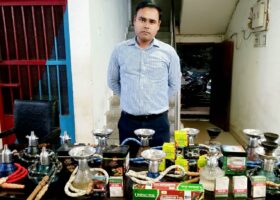 मामले का विवरण इस प्रकार है कि वरिष्ठ अधिकारियों के द्वारा जिला बिलासपुर के समस्त थाना प्रभारियों को थाना क्षेत्र में अवैध रूप से होटल, बार मे हुक्का संचालन करने वालों के खिलाफ शख्त कार्यवाही के निर्देश दिए है। इस निर्देश का पालन करने के लिए थाना प्रभारी चकरभाठा उमेश साहू ने कार्रवाई करने के लिए ठीम गठित किया है। इसी बीच मुखबिर की सूचना कर 08.03.26 को होटल शिवा इन में छापामार कार्रवाई की। पुलिस ने पाया कि होटल शिवा इन में छत के ऊपर खुलेआम हुक्काबार संचालित किया जा रहा है। पुलिस ने हुक्का बार चलने वाले आरोपी सिद्धार्थ गुप्ता पिता ओम प्रकाश गुप्ता उम्र 39 साल को पकड़ लिया। होटल शिवा इन बोदरी में बार से पुलिस ने 12 नग हुक्का पांट, 06 नग कोयला कोको जेल, 12 नग स्टेंड, 12 नग चिलम, 12 नग पाइप, 1 नग कोल हिटर, 03 नग प्लास्टिक के डिब्बे में अलग अलग फ्लेवर्ड तंबाखूयुक्त सिगरेट और नगदी रकम 5000 रुपये जप्त किए है। जप्त सामान की कुल कीमत कीमती 55000 रुपये है। आरोपी के खिलाफ सिगरेट और अन्य तंबाकू अधिनियम 2003 की धारा 21(1) 21 (2) 27 , 4 के तहत अपराध दर्ज कर विधिवत गिरफ्तार किया गया है।